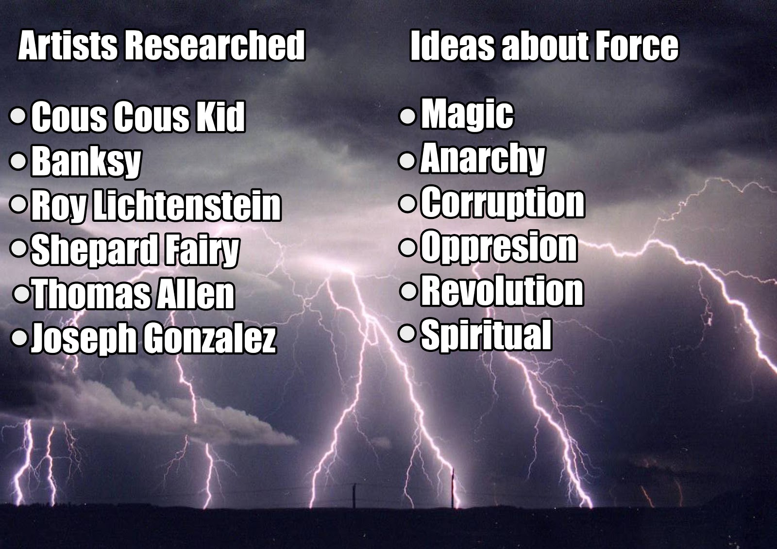 I started by making a Mind-Map with all the artists I've researched on one side, and the ideas of force that I have developed.